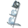 Bastidor de tubo de acero, azul. 2 Ruedas fijas + 2 ruedas giratorias con freno. Con techo. Laterales para colocación de marcos de aluminio DIN A1(no incluidos) Medidas expositor: 200 x 150 x 55 cm.