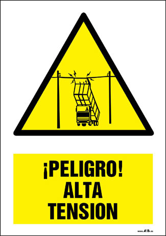 Señal de Advertencia con rótulo "¡Peligro! alta tensión".Tamaño A4. PVC de 0'4 mm de grosor. no luminiscente.