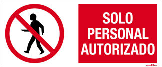 Señal de Prohibición con rótulo "Solo personal autorizado".Tamaño 29 cm x 12 cm. PVC de 0'4 mm de grosor. no luminiscente.